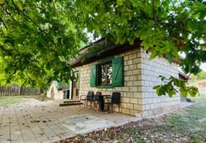 2 szintes kis vidéki pihenőház, a földszinten tágas nappali, felszerelt konyha, étkező egyben, és egy fürdőszoba található, valamint hozzá tartozik még egy tágas terasz is. Az emeleten pedig egy francia ágyas hálószoba található.
