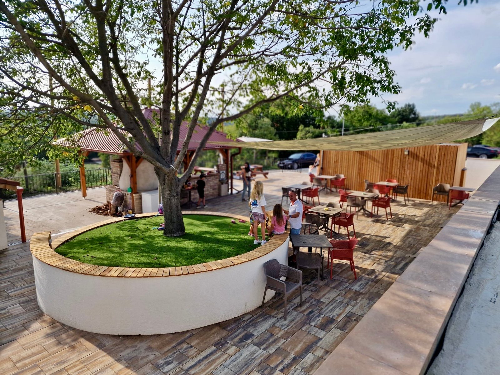 Amennyiben egy jó hangulatú családi, baráti vagy akár céges csapatépítő programon gondolkodsz, a Szépkilátás terasz felett kialakított hangulatos tűzrakóhely alkalmas lehet bográcsozásra, akár szalonnasütésre is. Max. 40 férőhelyes terasz asztalokkal, és kényelmes székekkel felszerelt. A teraszon kinyitható hatalmas napvitorla véd meg az esetleges tűző naptól. A terasz sarkában egy hatalmas diófa található, aminek árnyékában heverészhettek. Illetve a terasz fedett résszel is rendelkezik, ahol széles konyhapult, kemence és sparhelt is található.